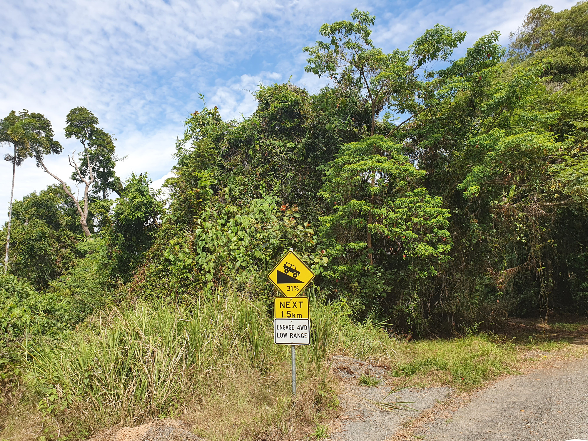 Leider fiel unterwegs der Besuch am Elim Beach, mit den dreifarbigen Dünen, wegen Covit geschlossen, ins Wasser. Von Cooktown fuhren wir über die Küsten Schotterstrasse entlang durch den Regenwald nach Cape Tribulation im Daintree Nationalpark. Offiziell ist die Strecke für Campervan und Camper Trailer wegen den bis zu 31% Steigung/Gefällen verboten. Dank Rosmarie und Heinz, die bereits am Cape Tribulation auf uns warteten, wagten wir uns ins Abenteuer. Rückblickend war es mit unserem gut ausgerüsteten 4x4 Toyota Prado kein Problem. Der dichte Regenwald in einem Auto zu durchqueren ist extrem eindrücklich, natürlich fehlte auch das obligate Regenwaldbad nicht. Das Durchqueren der Bäche war kein Problem, um diese Jahreszeit ist der Wasserstand überall moderat. Abgesehen davon fühlten wir uns in der Zwischenzeit eh wie alte Hasen.