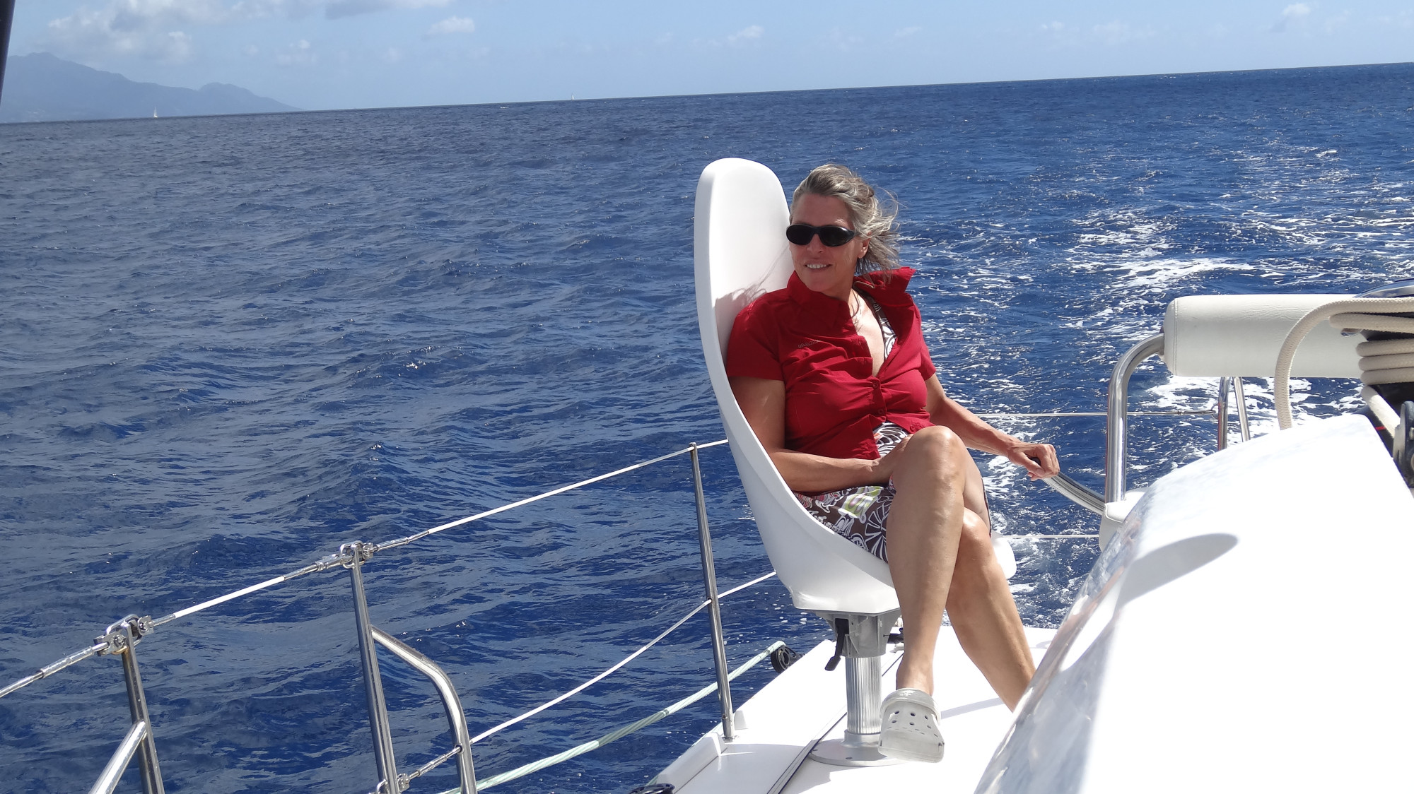 Am 18.2 ist Iris nach gut 2 Wochen Schweizerländle wieder gut in Forte de France, Martinique gelandet. Evi und Iris fuhren fürs Bunkern durch einen lauschigen Mangrovenkanal währenddessen sich Martin um die technischen Dinge kümmerten und Matthias am Kitten war. Über die Westküste von Martinique segelten wir entlang der Küste von Dominica, via Marie-Galante, kurzer Einklarierungsabstecher nach Guadeloupe über die Ile les Saintes wieder zurück entlang der Ostküste von Martinique nach Le Marin. Die Tage waren ausgefüllt mit Segeln, Reisen und Kochen. Während den ganzen 4 Wochen wurden wir mit sehr guten Menus von Evi und Iris verwöhnt. Evi und Matthias surften an den jeweiligen Ankerplätzen, Matthias oft Offshore und am Schluss des Tages übte er sich im Kitten. Iris genoss 3 Anfängerkurse im Surfen und Martin die Stille und Weite auf dem Schiff. Unterwegs sahen wir diverse Schildkröten, vor Dominica 2 Finnwale und auf Les Saintes tummelte sich eigenartigerweise ein Delphin allein inmitten aller Schiffe. Am Morgen genossen Iris und Evi jeweils das tägliche Morgenbad, sowie am Abend zu Viert den obligaten Sun-downer mit Rum und Gingersirup. Da hier auf den Antillen Tag und Nachtgleiche herrscht, gingen wir oft ohne Hühner mit den Hühnern ins Bett, müde von der Bewegung und der frischen Luft. Am 2.3. luden wir Matthias in Vauclin aus, Evi kam noch mit nach Le Marin und half mit das Schiff zu putzen bis es glänzte.