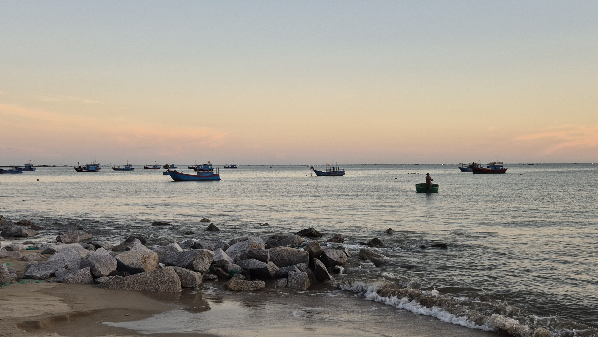 Am 19.12.25 ging die Reise per Zug weiter nach Thap Cham. Vor jedem Wagon stand ein uniformierter Schaffner in weissem Hemd und Krawatte, der uns an unsere vorreservierten Plätze führte. Falls gewünscht, wurde frisch zubereitetes Essen serviert. Nach einer 6h Fahrt, stiegen wir gleichzeitig mit Bisa und ihren 2 wunderbaren Kindern aus. Es war eine herzliche Begegnung. Im Hotel Duc Chinh in Khann Hai hatten wir im 4. Stock ein wunderschönes Zimmer mit Blick aufs Meer sowie einer riesigen Dachterrasse gebucht. Wir waren weit und breit die einzigen Touristen. Wir hatten Glück, dass um die Ecke das einzige offene Restaurant lag. Ein sehr beliebtes Fisch- und Meeresfrüchte Restaurant, das wir gemütlich zu Fuss erreichen konnten. Zufällig feierten dort Bisa mit ihrer Familie den Geburtstag vom 13j. Bin. Spontan wurden wir eingeladen mit zu essen. Die Vietnamesen sind ein sehr herzliches wie auch gastfreundliches Volk.