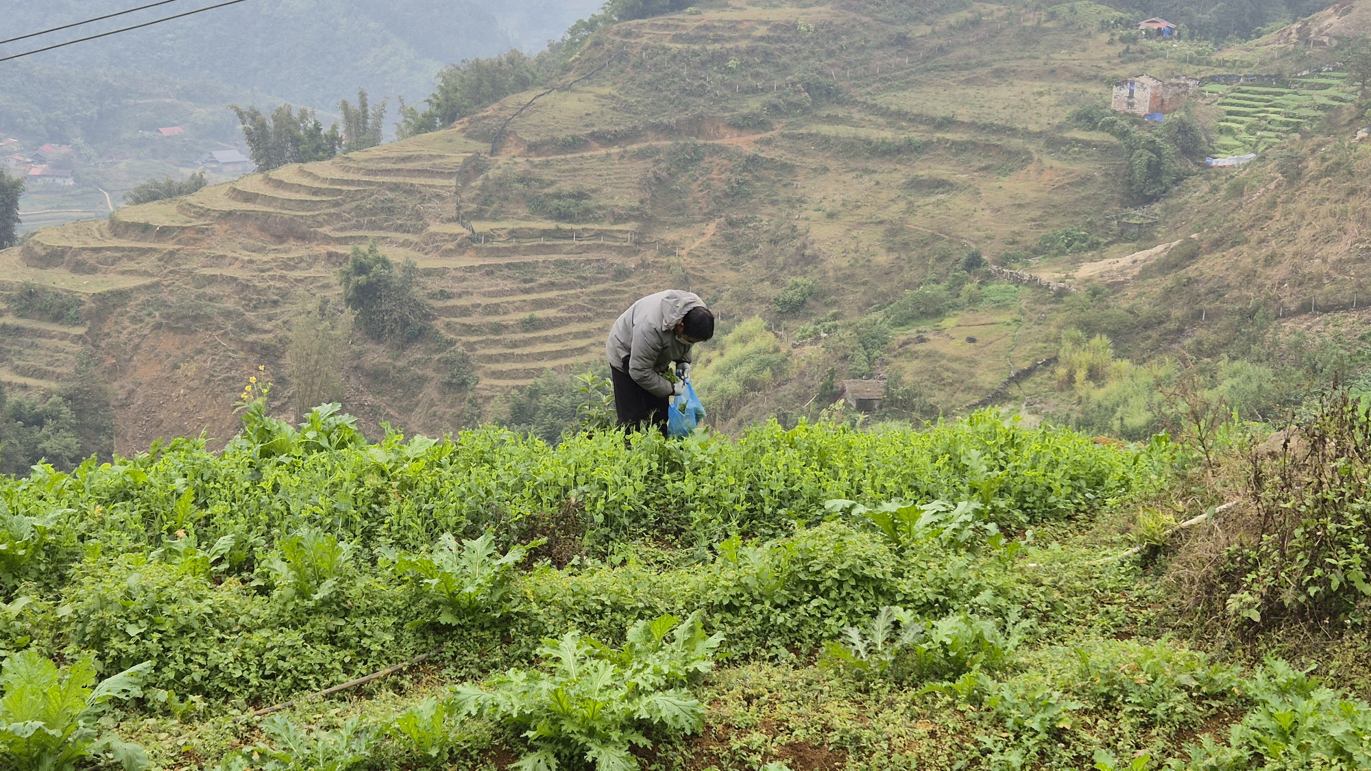 Sapa begrüsste uns mit einer Nebeldecke und ca. 7°C. Leider half es nicht wirklich, dass wir die Unterkunft zwar heizen konnten, jedoch unten im Restaurant war es fürs Frühstücken so kalt, dass die Besitzer uns in ihren Wintermänteln bedienten. Trotzdem liessen wir uns nicht unterkriegen und fuhren am ersten Tag mit der vietnamesischen «Marzilibahn» zur Gondelbahn, dann hoch auf den 3130m hohen Funsipan. Viiiiiiele chinesische Touristen, ein wunderbares Nebelmeer, wie immer schöner von oben als von unten erwarteten uns! Unser auf die Tropen ausgerichtetes Schichtenprinzip, reichte jedoch nicht ganz aus, dass wir uns so richtig warm eingemummelt fühlten. Nach einem kurzen Abendessen hüpften wir bald mal ins geheizte Bett. Am nächsten Tag änderten wir die 3 Nächte Buchung auf 2 ab. Kauften für unsere Weiterfahrt Bus Tickets und wanderten hoch durch den Ham Rong Garden. Zuoberst schlüpfen wir durch den Zaun hindurch um mal wieder so richtig allein die Natur zu geniessen.