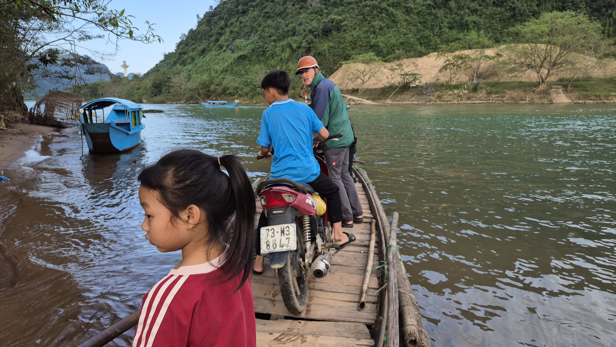 Am letzten Tag in Phong Nha mieteten wir ein Moto und genossen bei schönstem Sonnenschein eine Sightseeingtour durch eine malerische Umgebung. Auf der Rückfahrt bestiegen wir eine mit Ästen gebaute Fähre, diese brachte, während der Flussüberquerung, noch ein wenig Adrenalin ins Spiel. Iris genoss zum Abschluss noch einmal eine ausgiebige Massage und nach einem ausgiebigen Abendessen, verliessen wir PN um 10.30pm. Diesmal hatten wir in einem Bus Luxus Betten gebucht. Obwohl es viel bequemer war als der Sleeper Bus, konnten wir trotzdem nicht schlafen. Bremsen, Anhalten, Menschen aussteigen, einsteigen. Mit einem Ohr und Auge überwachst du ob du willst oder nicht die Reise.
