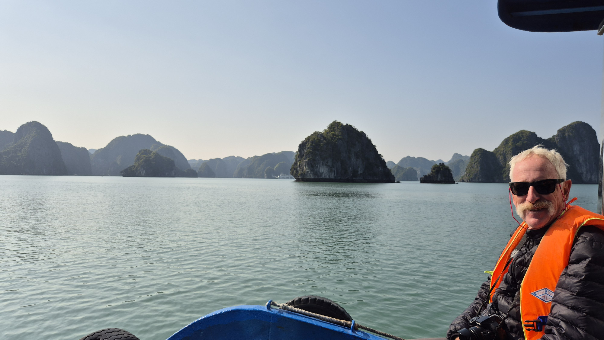 Halong Bay. Dieser unvergessliche Ausflug mit privatem Skipper, der uns auch aufs fürstlichste mit frischem Fisch bekochte war definitiv das Geld wert. Wir genossen die Ruhe und allein mit dem Skipper auf dem Boot zu sein sehr. Die wunderschönen markanten Felsinseln, Floating Fisher Village, das blaue Wasser und der sonnige Himmel. Leider versuchte unser Skipper erfolglos, ein auf einer Sandbank festgefahrenes Boot raus zu schleppen.